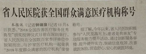 《江西日报》省人民医院获全国群众满意医疗机构称号