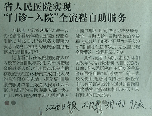 《江西日报》省人民医院实现“门诊—入院”全流程自助服务