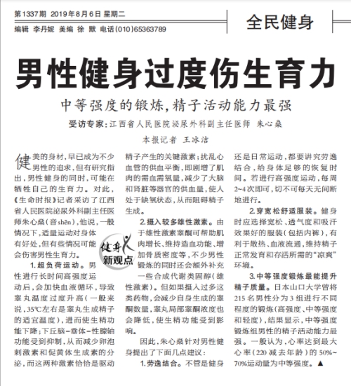 《生命时报》男性健身过度伤生育力