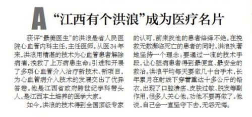 《江南都市报》“江西有个洪浪”成为医疗名片