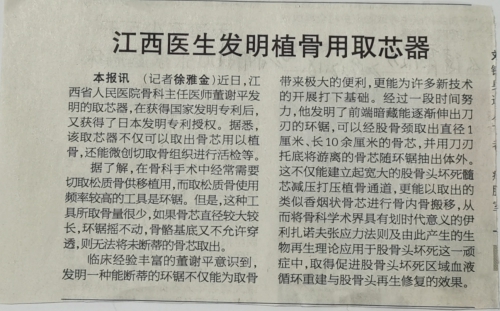 《健康报》江西医生发明植骨用取芯器