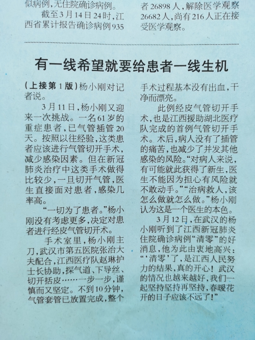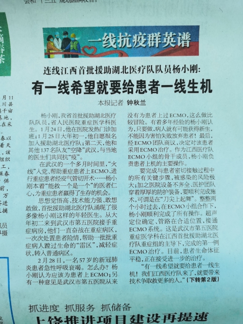 《江西日报》连线江西首批援助湖北医疗队队员杨小刚:有一线希望就要给患者一线生机