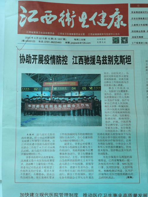 《江西卫生健康》协助开展疫情防控 江西驰援乌兹别克斯坦