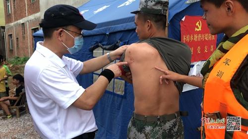 队长张维新为抗洪一线官兵问诊