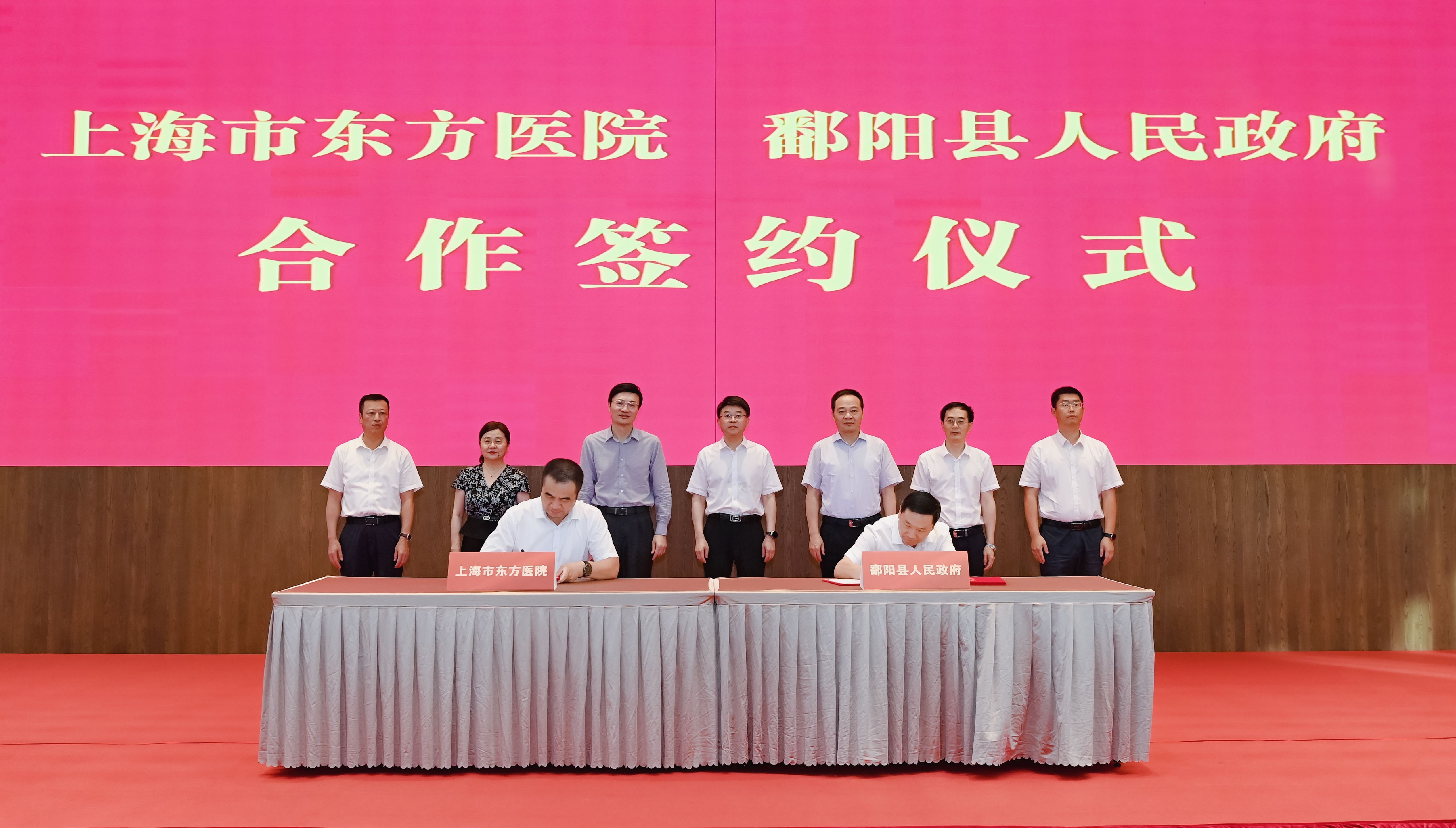 活动中,鄱阳县与上海市东方医院签订合作共建协议,双方将建立紧密型医疗合作关系,依托东方医院优质医疗资源和辐射带动作用,在医院管理、医疗服务、学科建设、人才培养、科研教学、信息管理等方面开展深度合作,全面提升鄱阳县医疗服务能力和管理水平;鄱阳县与江西省人民医院签订托管鄱阳县第二人民医院协议,以此提升鄱阳县医疗服务能力和水平,推动优质医疗资源下沉,力争五年内将鄱阳县第二人民医院全面打造成集智能化、信息化、现代化于一体的智慧型三级甲等水平综合性医院。