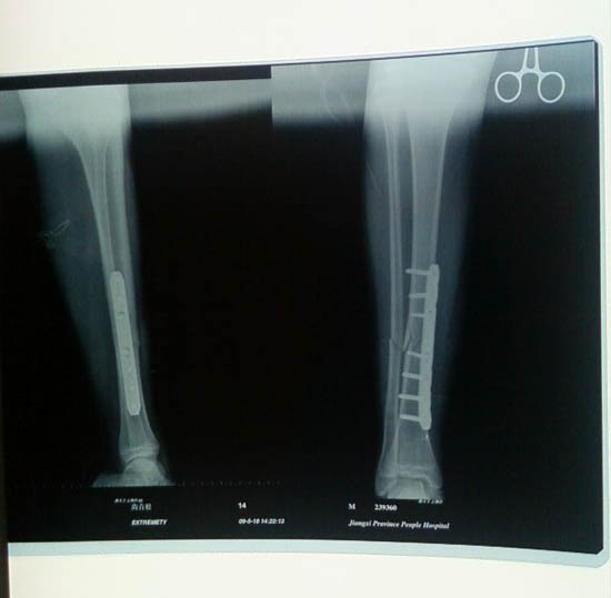 小张入院后骨二科与病人及家属多次沟通,告知如采取夹板、石膏固定非手术治疗,骨折复位不可能很好,且病人患肢活动受限膝关节、踝关节易僵硬;治疗时间长影响病人学习。而运用小切口复位钢板固定,手术创伤小、术后疤痕小,病人可早期活动,对关节功能恢复好。小张及家属经考虑后选择了微创手术钢板内固定治疗,术后小张恢复的很快,并且没耽搁学习。