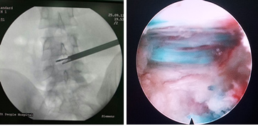 椎间孔镜技术是真正的微创技术,并被国际脊柱外科界所承认是一种损伤最小、适应症最广的椎间盘突出/脱垂的治疗技术, 是新的脊柱外科发展趋势和重要发展方向。其采用In Side--Out Side技术,通过安全三角区进入椎间盘,摘除病变髓核后退至椎间孔外,清除脱出的碎片;中央型突出,压迫椎管超过上关节突连线的病例,采用远外侧水平入路,直接摘除突出组织;游离型、黄韧带肥厚、钙化、椎管狭窄、神经孔狭窄等病例,采用椎间孔内入路,可摘除各种病变软组织、清理骨质;可以处理所有类型的椎间盘突出,还可以处理骨质,可做椎间盘复发的微创翻修手术(对于开放手术后复发的,MED手术后复发的),配合经皮固定技术可以完成退变疾病的治疗;椎间孔镜(是整体外径仅有6.3mm的同轴内窥镜,并配备有灯光、器械工作通道、注水及冲洗通道)仅需7mm的皮肤切口,从病人身体侧方、侧后方、后方,采用水平、倾斜、垂直的入路方式,通过椎间孔直达椎间盘突出部位,在椎间盘纤维环之外做手术,不伤及椎板及黄韧带,不影响脊柱稳定性,在内窥镜直视下可以清楚的看到突出的髓核、神经根、硬膜囊和增生的骨组织,然后使用各类专用的抓钳摘除突出组织、镜下去除骨质并配合射频电极进行盘内消融、术中止血及封堵破损纤维环。创伤小:皮肤切口仅7mm(如同一个黄豆粒大小),术中出血不到 5ml,术后仅缝1针(亦可不进行缝合处理),是同类手术中对病人创伤最小、效果最好的治疗腰椎间盘突出的终极微创手术。