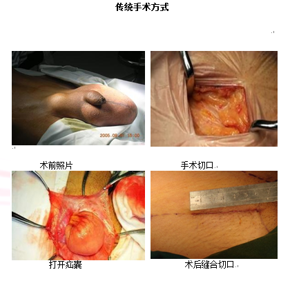 治疗:由于成人疝不可自愈,手术仍是目前唯一的治愈方法。目前手术方式有:①、传统开腹腹股沟疝无张力修补术;②、腹腔镜下腹股沟疝无张力修补术。