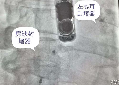来自进贤县的66岁王女士(化名),患有先天性心脏病(房间隔缺损)、高血压病及慢性心房颤动(简称房颤),血栓栓塞、出血风险评分都很高,长期服用华法林药物抗凝治疗。虽严格按医嘱监测凝血功能,但仍反复发生脑梗死及球结膜出血,反复调整用药及担心出血让老人痛苦不堪,便慕名前来就诊。洪明与周裔忠认真分析了患者情况,制定了“一站式”介入手术方案。患者房间隔缺损部位与左心耳并不在同一轴线上,左心耳封堵还要“翻山越岭”,手术具有一定的难度。在超声科、麻醉科、介入室的配合下,洪明团队先后为患者进行了左心耳封堵术及房间隔缺损封堵术,一次手术就把先天性心脏病、房颤有关脑卒中及抗凝出血并发症等问题都解决了,为患者减少了多次手术的痛苦,节省了手术费用及后续治疗费用。术后患者恢复良好,6天后顺利出院。