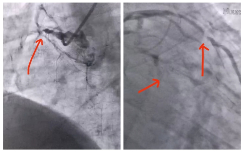 右冠完全闭塞,前降支完全闭塞,对角支狭窄90%以上