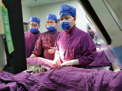 ECMO(体外膜式氧合),是将体内血液从静脉系统引流到体外,进行氧合后泵入到动脉系统,完成对心脏和肺的替代,可以使心脏和肺得到充分休息,帮助心脏危重症患者渡过难关,为进一步治疗提供支持。患者在ECMO支持下于一周后挺过心衰高峰期难关,洪浪团队充分评估患者病情后为患者行第二阶段手术,成功开通慢性闭塞的回旋支,进一步改善心脏供血。更有意义的是,此次手术面向全国心内科介入医生进行线上直播,分享治疗技术,以期更多此类患者能得到高效的救治,当日在线观看的医生达8000余人次。手术成功后,患者在心内科、重症医学科团队共同协作下于一周后撤机,在10月22日这天康复出院。