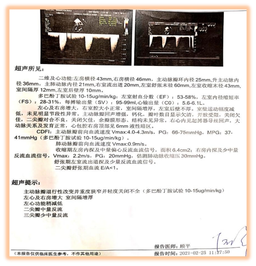 75岁的王爷爷因无明显诱因反复出现头晕10余年,为头部昏沉感,偶有视物旋转。曾多次在省级医院治疗,诊断为脑动脉供血不足,期间头晕间断性发作。近日患者有活动后胸闷症状并反复出现,这一直困拢着王爷爷。王爷爷联系到江西省心血管病医院洪浪医疗团队的曾洪医师,结合王爷爷的症状、病史以及心脏彩超检查结果,判断王爷爷的主动脉瓣退行性改变并中度狭窄并轻度关闭不全。曾洪为明确王爷爷主动脉瓣狭窄程度,完善进一步检查,行多巴酚丁胺试验,结果试验阳性,主动脉瓣重度狭窄,有主动脉瓣置换(TAVI)手术指征。曾洪仔细耐心地给家属上了一堂有关主动脉瓣狭窄的课程,家属才恍然大悟,原来王爷爷胸闷跟主动脉瓣狭窄有关,走了好多弯路后总算找到了病根。家属激动不已,但又担忧,王爷爷年龄大,既往装过心脏起搏器,患有高血压、脑梗死、肺动脉高压等基础疾病,怕老爷子承受不了手术风险。