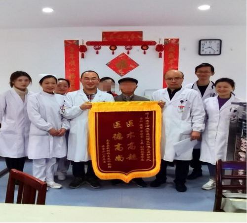 手术历经约3小时,术后王爷爷很快就清醒了,24小时后王爷爷就能下床在床边活动。王爷爷非常开心,10多年的毛病一直困扰着他,如今他的一块心病终于解决了,可以和正常人一样生活。术后复查心脏彩超显示,主动脉瓣置换术后人工瓣功能尚可,左室射血分数由原来的40%上升至48%,跨瓣压差(PG)由术前124mmHg降至5mmHg,效果显著,其他各项指标均好转。经过TAVI医护团队精湛的技术和精心护理,王爷爷的病情恢复得很快,于3月10康复出院,为表感谢,特为医护人员馈赠锦旗一面。