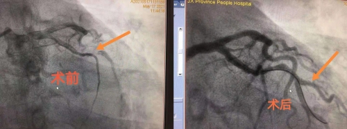 经过实验室检查、心电图检查、影像学检查,欧阳长生将手术目的、过程、风险、可能的预后详细告知患者家属的同时,医护团队立即给患者做好充分的术前准备,并迅速将夏爷爷送入导管室手术。在局麻下行冠状动脉造影,显示多支血管存在狭窄病变,最严重的回旋支中远段长病变,狭窄最重约95%,详细告知家属患者冠脉病变严重情况后,家属表示理解并要求行支架术治疗,立即予开通最严重病变血管,术中顺利,术后患者安返病房,生命体征平稳,右上腹疼痛明显缓解,经过医护团队精心治疗与护理,夏爷爷的病情恢复得很快,患者及家属满怀激动,“感谢欧阳主任及全体医护人员,是你们给了我父亲第二次生命”。