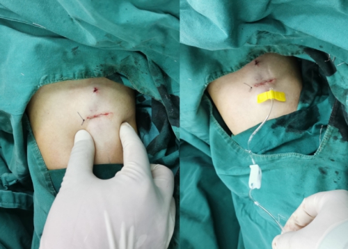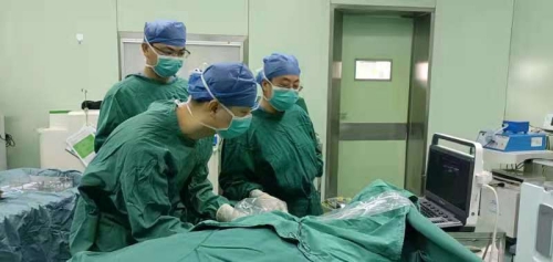 接受手臂输液港手术的是1位63岁的女性乳腺癌患者,手术中,朱晓亮、章新星医生首先对患者预埋血管进行评估,选择穿刺点,并在超声引导下迅速完成置管,继而制作囊袋、埋入港体、缝合切口。手术顺利,术后患者无不适主诉,切口处无渗血、渗液,血管通路输液通畅。