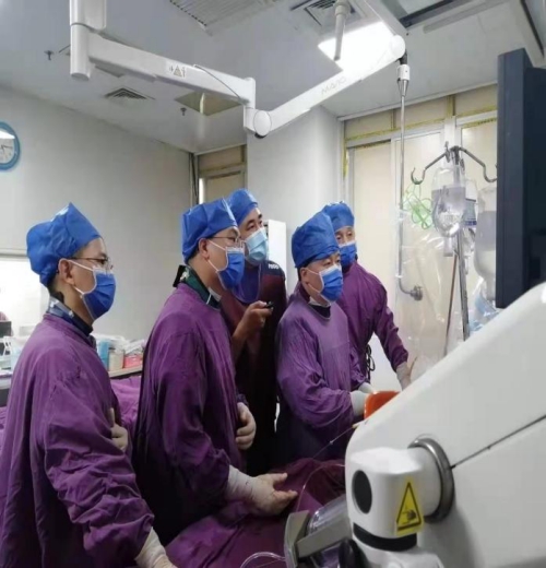 江西省心血管病医院在院长洪浪带领下,采用了近年来发展迅速的微创技术——腹主动脉腔内隔绝术,“创伤小,恢复快”,就是将覆膜支架导入腹主动脉,膨胀后将腹主动脉瘤与血管腔隔绝,促使其逐渐机化、缩小,从而消除瘤体破裂、出血的隐患,达到治愈的目的。