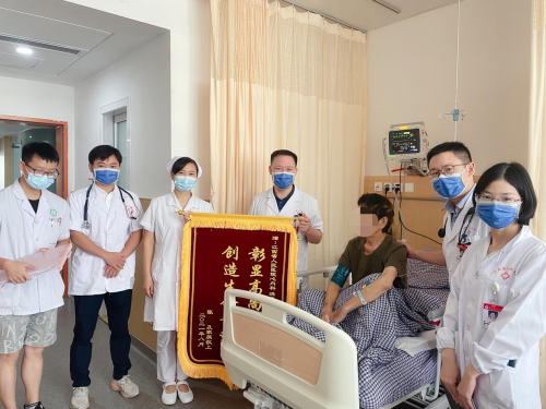 在多个团队的医护人员精心照护下,患者病情终于稳定,再次转回心内四区,恢复良好并于8月23日顺利出院。出院前夕患者家属送来了锦旗和表扬信,给予了整个团队充分的肯定和认可。拿患者本人的话总结说:“感恩医护人员不放弃,让我绝境中求生;感谢微创介入显神功让我少受痛苦;感谢家人的支持,也感谢不服输的自己!”