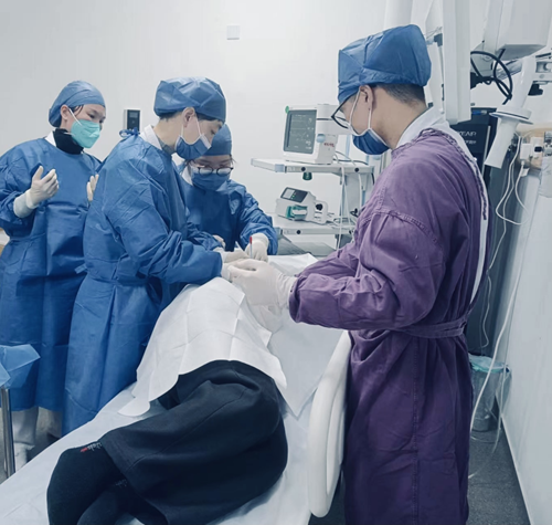 | 江西省人民医院(南昌医学院第一附属医院)呼吸与危重症医学科(PCCM)在科主任肖祖克的指导下,由吴西雅主任医师主刀,开展了首例胸腔镜后,现已常规开展57例内科胸腔镜检查术,其中48例患者根据胸膜活检的病理标本,得到明确诊断,阳性率达84.2% 。该技术只需在局麻下进行,时间短:平均1小时,切口小:1-2cm,下地时间早:术后即可离床下地,费用低、并发症少,获得患者及家属的高度好评。