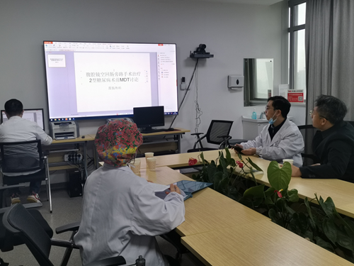 患者龚先生,42岁,发现糖尿病已有8年,靠服用降糖药来控制血糖,效果不佳,空腹血糖10mmol/L左右,餐后18mmol/L左右,糖化血红蛋白8.9%,严重影响生活质量。当得知医院开展糖尿病外科手术,他来到胃肠外科门诊进行咨询,廖传文详细评估了龚先生的病情并向其介绍了糖尿病手术的方法及相关事项。龚先生反复考虑后,本着想要摆脱顽疾的决心,毅然接受手术治疗。术前团队进行多学科讨论,对手术指征、风险、围手术期管理等一系列问题进行评估和讨论,制定了详细的手术及围手术期管理方案。