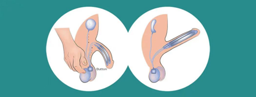 目前临床上应用最多的是可自由控制的可膨胀型假体三件套,主要包括三个组成部分:充满水以后会变硬的圆柱体,控制勃起和疲软状态的控制泵,以及储液囊,三个部件通过连接管相连。