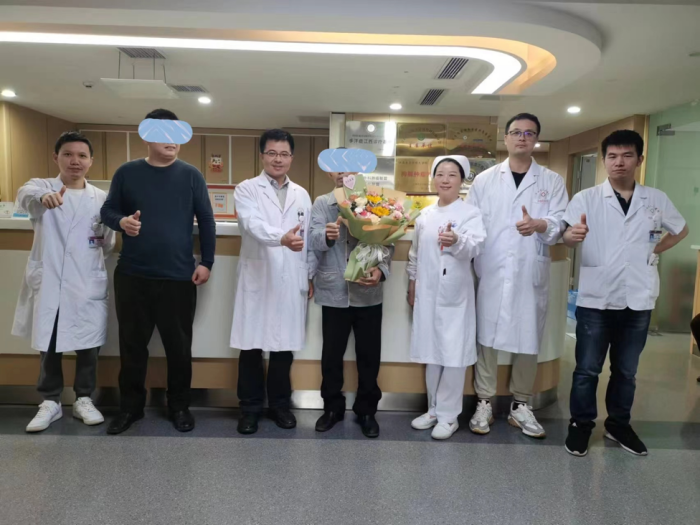 图1 出院前患者和陈立如副主任医师等医护团队成员合影