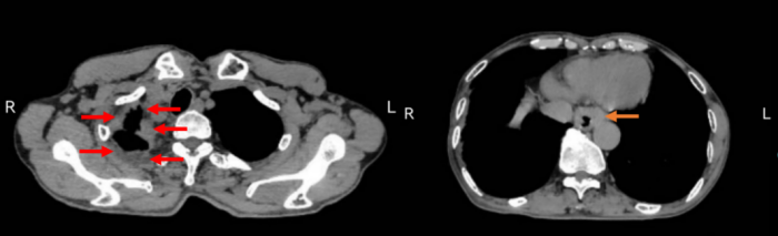 据胸外科诊疗组长、副主任医师章晔介绍,该病例为一例异时性肺、食管重复癌患者,现年65岁,在2年余前曾因右肺上叶肺癌行根治性手术,并接受了术后辅助化疗,身体体力也因此有所下降;但不幸的是,患者在今年春节后出现吞咽困难,经胃镜检查确诊食管癌,后慕名到我院胸外科进一步诊治。