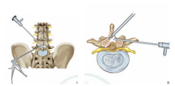 脊柱单侧双通道内镜(Unilateral Biportal Endoscopy)技术,简称UBE技术,是一种水介质下的脊柱内镜技术,通过单侧2个独立小切口分别建立观察通道和操作通道,观察通道内放置内窥镜进行手术视野监视,操作通道用于完成各种常规脊柱外科操作。
