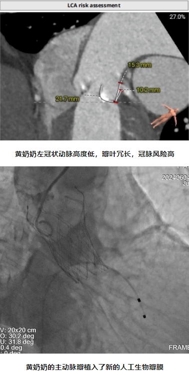 另外一位患者是80岁的黄奶奶(化名),她确诊主动脉瓣狭窄疾病已长达10余年,之前她心衰症状不太严重的时候,一直拒绝外科换瓣,一是因为她不愿意承受开胸手术的痛苦,二是因为开胸手术费用昂贵。后来她饱受瓣膜病的折磨,想要手术治疗,却被告知丧失了手术时机,因黄奶奶年龄大,合并许多基础疾病,已无法耐受外科换瓣手术。她的家人辗转多地寻医无果,最终找到了赖珩莉团队。由超声科主任医生顾平为黄奶奶仔细评估心脏瓣膜情况,副主任医师蔡新勇仔细为黄奶奶检查身体并分析检查结果,认为目前只有冒险行微创介入换瓣才有可能为黄奶奶带来生存的希望,他向赖珩莉副院长汇报病情并组织多学科反复讨论,为黄奶奶制定了详细周密的手术计划。