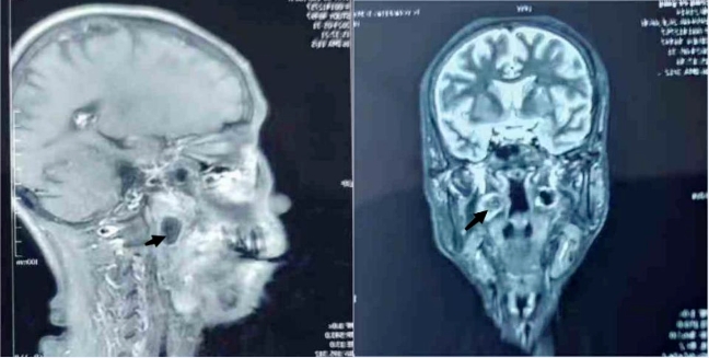此次手术的患者为一名老年女性,因左侧咽喉异物感而入院寻求治疗,经过全面检查确诊为咽旁间隙肿瘤,肿瘤位于咽旁前间隙近翼突钩处,由于其位置的特殊性,传统的经颌下或腮腺切口入路手术难以充分暴露肿瘤,同时经口触诊也未能有效触及肿瘤。