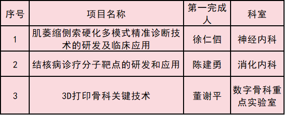 院党委委员、神经内科主任徐仁伵带领的神经内科团队研发的“肌萎缩侧索硬化多模式精准诊断技术的研发及临床应用”,通过整合多种前沿技术,显著提高了肌萎缩侧索硬化的早期确诊率,为患者争取了宝贵的治疗时机,为罕见病的诊断开辟了新思路。